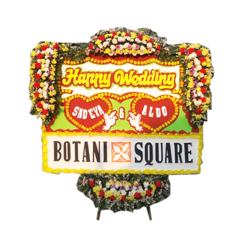 Rangkaian bunga papan khusus untuk acara pernikahan.